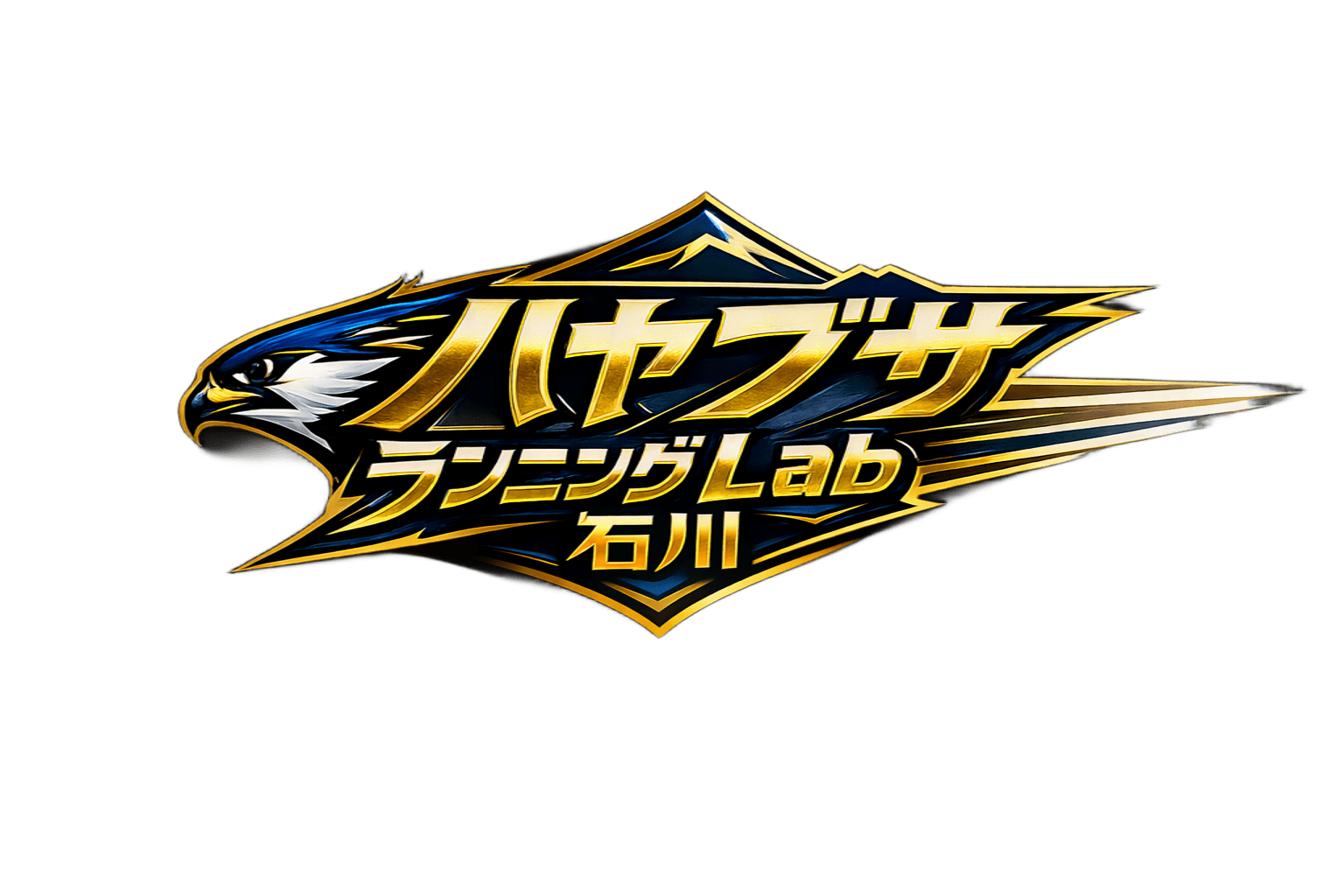 (ハヤブサランニングLab石川のロゴマーク。白山と金箔のゴールドを基調とした感じで。)